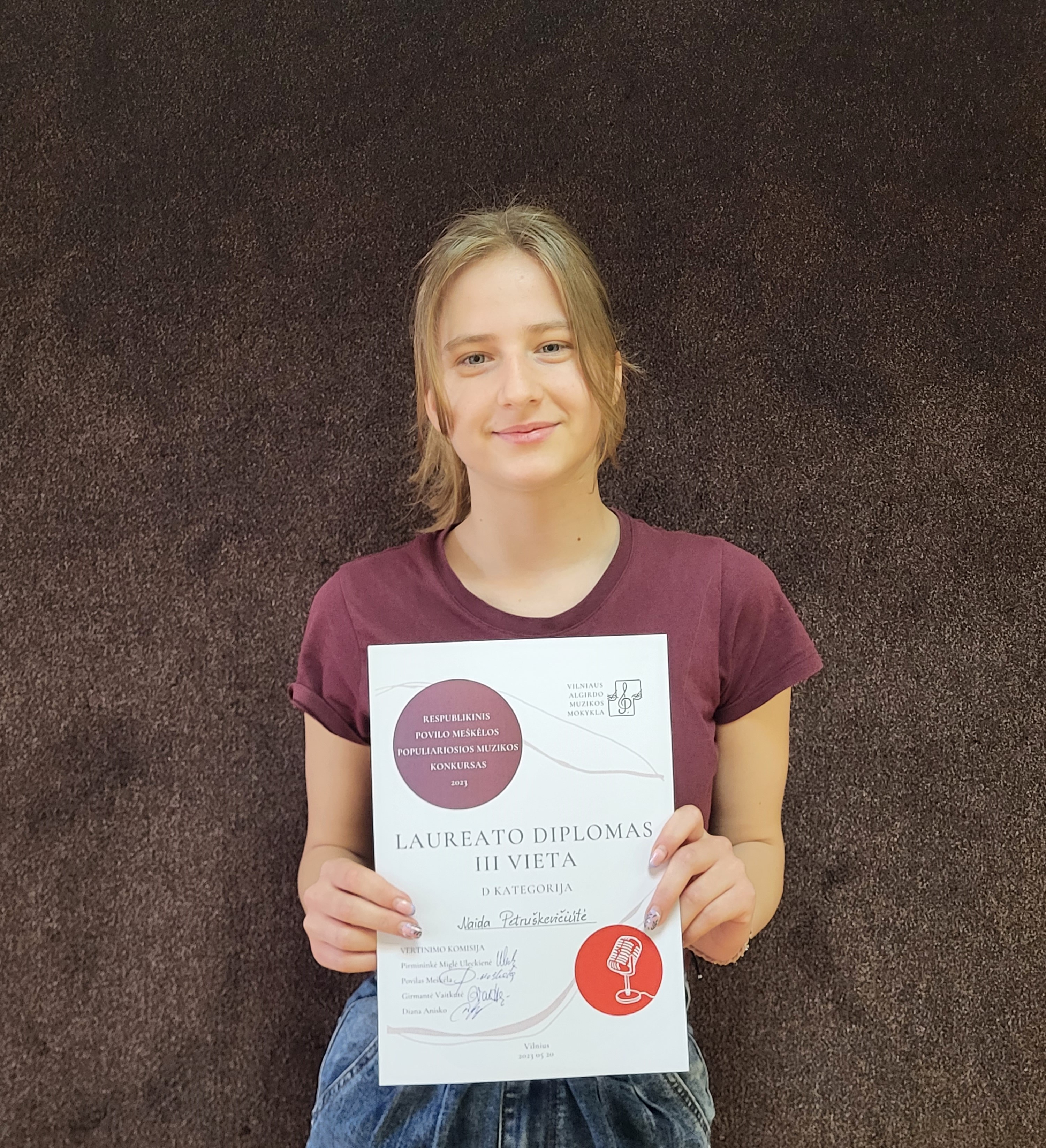 Sveikiname Respublikinio Povilo Meškėlos populiariosios muzikos konkurso 3 vietos laimėtoją Naidą Petruškevičiūtę (mok. Violeta Česnulytė).